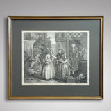 This is an original antique copper plate engraving of Plate 1 in the series "A Harlott's Progress by William Hogarth (1697 -1764), a good clear impression on early paper. Plate 1 in the set of engravings depicts the arrival in London of the young Moll Hackabout. The prints were first published in 1732. This very early impression is in good condition, there is minor discolouration around the edge but this is to be expected in an item at least 200 years old. Provenance, a private collection of important early English prints and engravings.